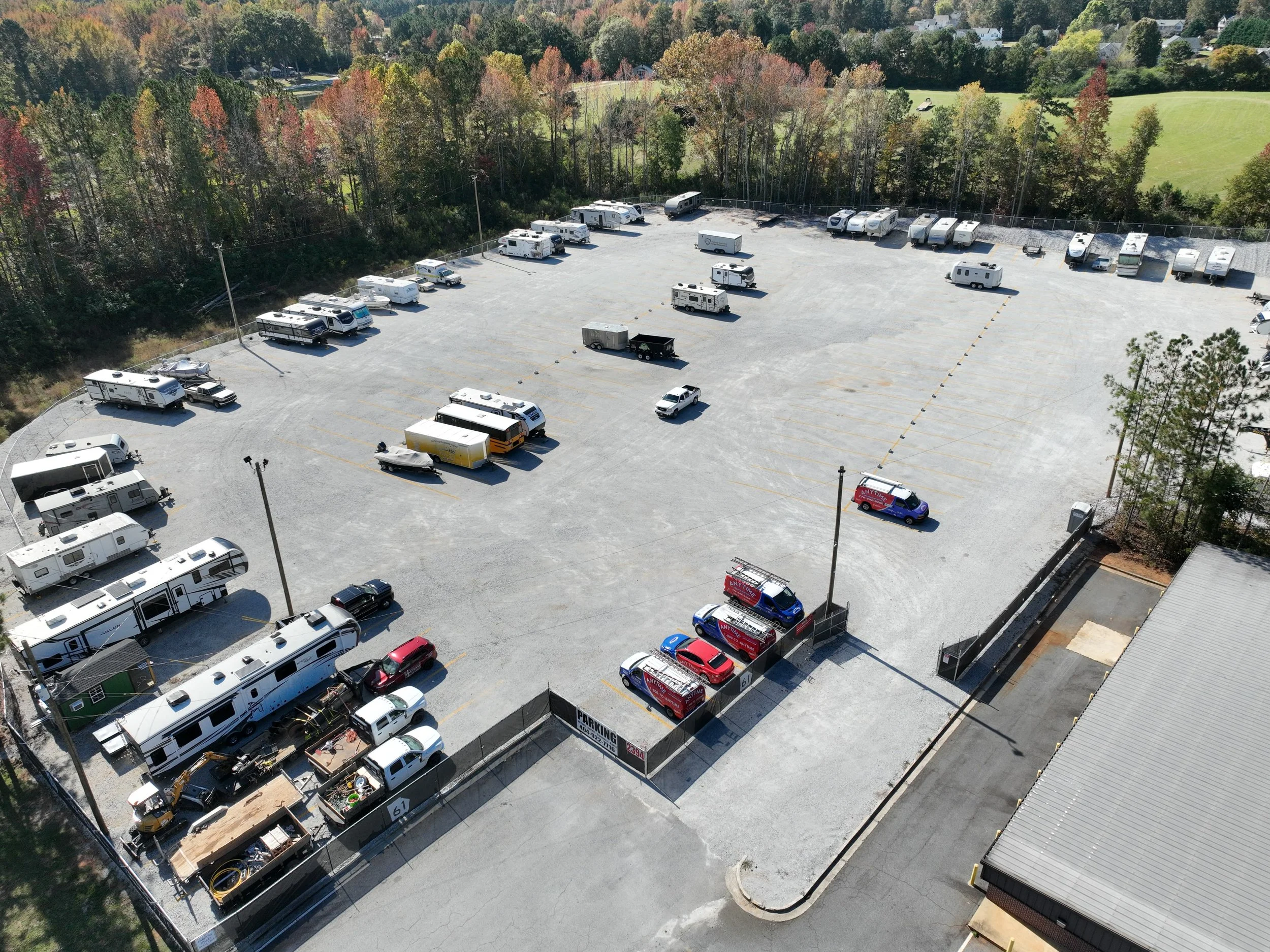 All of our spaces offer 100’ + turning radius and larger than needed spaces!